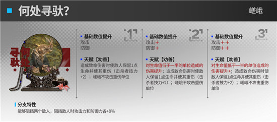 分支特性:能够格挡两个敌人。格挡敌人时,攻击力、防御力各+8%。