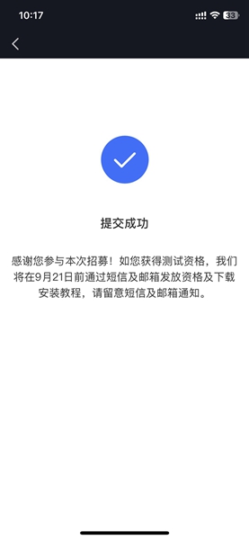 2。提交问卷后,玩家如果成功获得内测资格,将会收到短信和邮件通知。