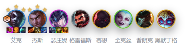 所需棋子:艾克、杰斯、图庄尼、格拉夫、塞恩、金克斯、普朗克、黑默丁格