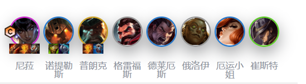 所需棋子:涅槃、鹦鹉螺、普朗克、格雷夫斯、德瑞乌斯、俄洛伊、末日小姐、崔斯特