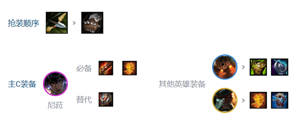 装备方面,反曲弓优先。涅槃的装备需要三个攻速,泰坦以肉为主T.