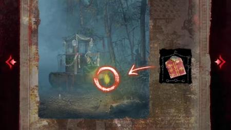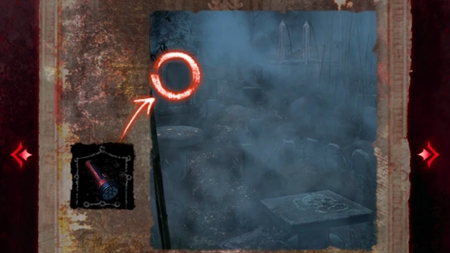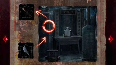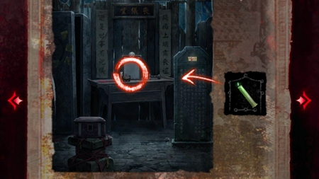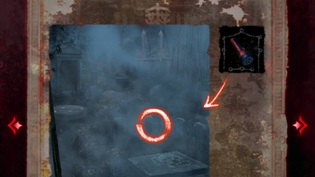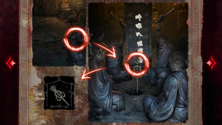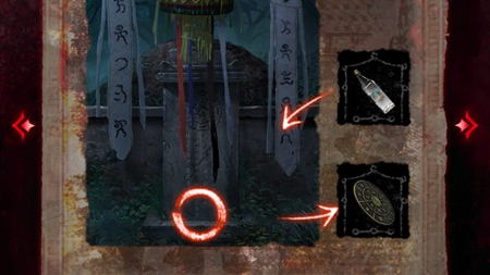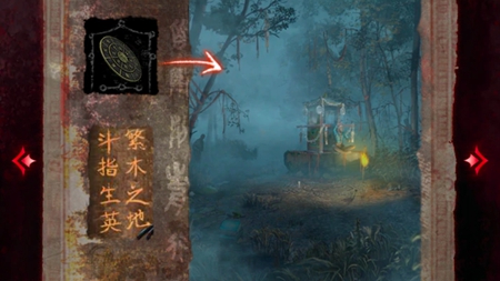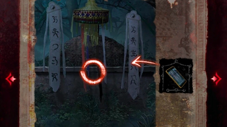 9。再次回到墓地,使用禅杖将鱼的流光挂在右前方的坟墓上,并检查鱼的流光所指示的线索。