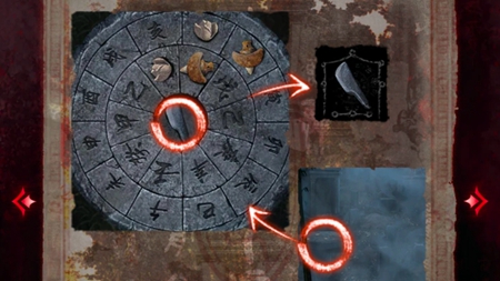 19。根据太阳穴螺栓上的线索,将壬子盘上的“死”和“辅”字拨到最右边以检查线索。