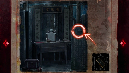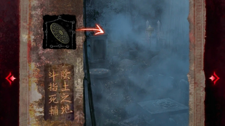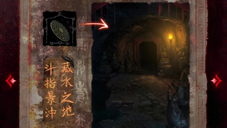 22。根据三时托盘上的线索调整童子庙门闩上的机制,将其打开并进入墓地深处。