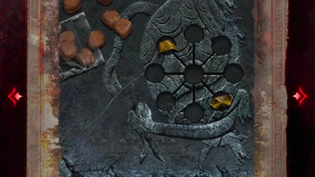20。收好壬盘来到密林中,或者根据门闩上的线索在密林中取出壬盘,并将“盛”和“英”字调整到最右边。