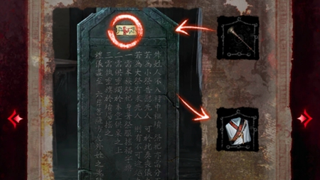 4。在右边的石臼上,根据四块墓碑的时间和图案,按图示排列,打开机关即可获得石刀。