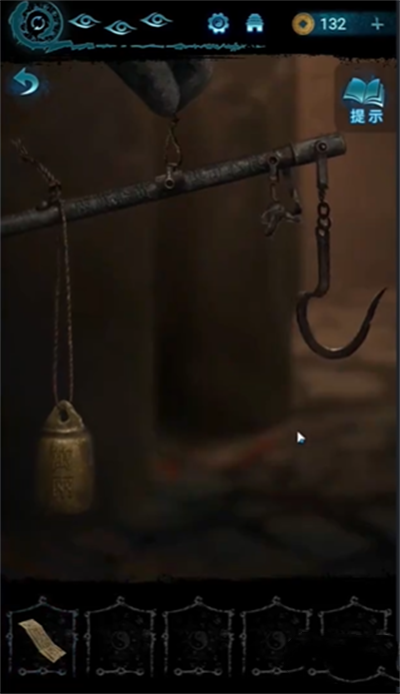 17、将心形雕塑交给老肖,放置在秤梁上,即可获得物质愿望;对话结束后,捡起左下角的绳子、木雕和纸条。