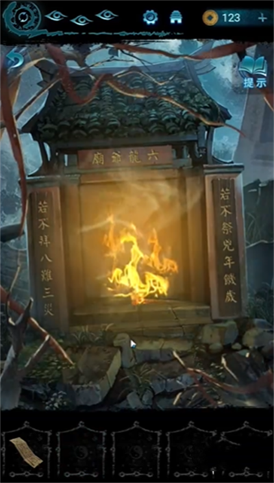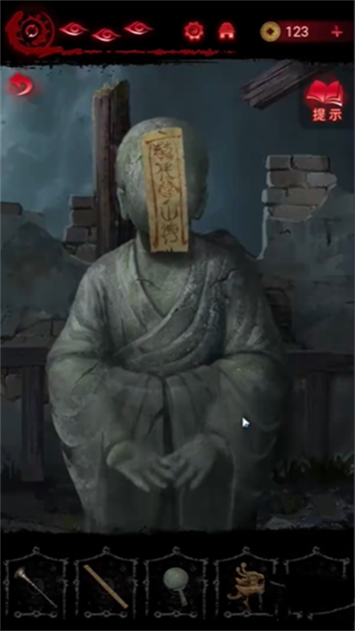 1、触发场景结束后,点击佛像上方的物品即可获得灵位;在石像后面,可以得到线索。