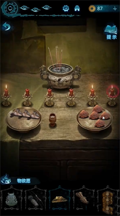 18.返回建筑,按照下图放置贡品,获得关注愿望;然后将木雕交给女主角。
