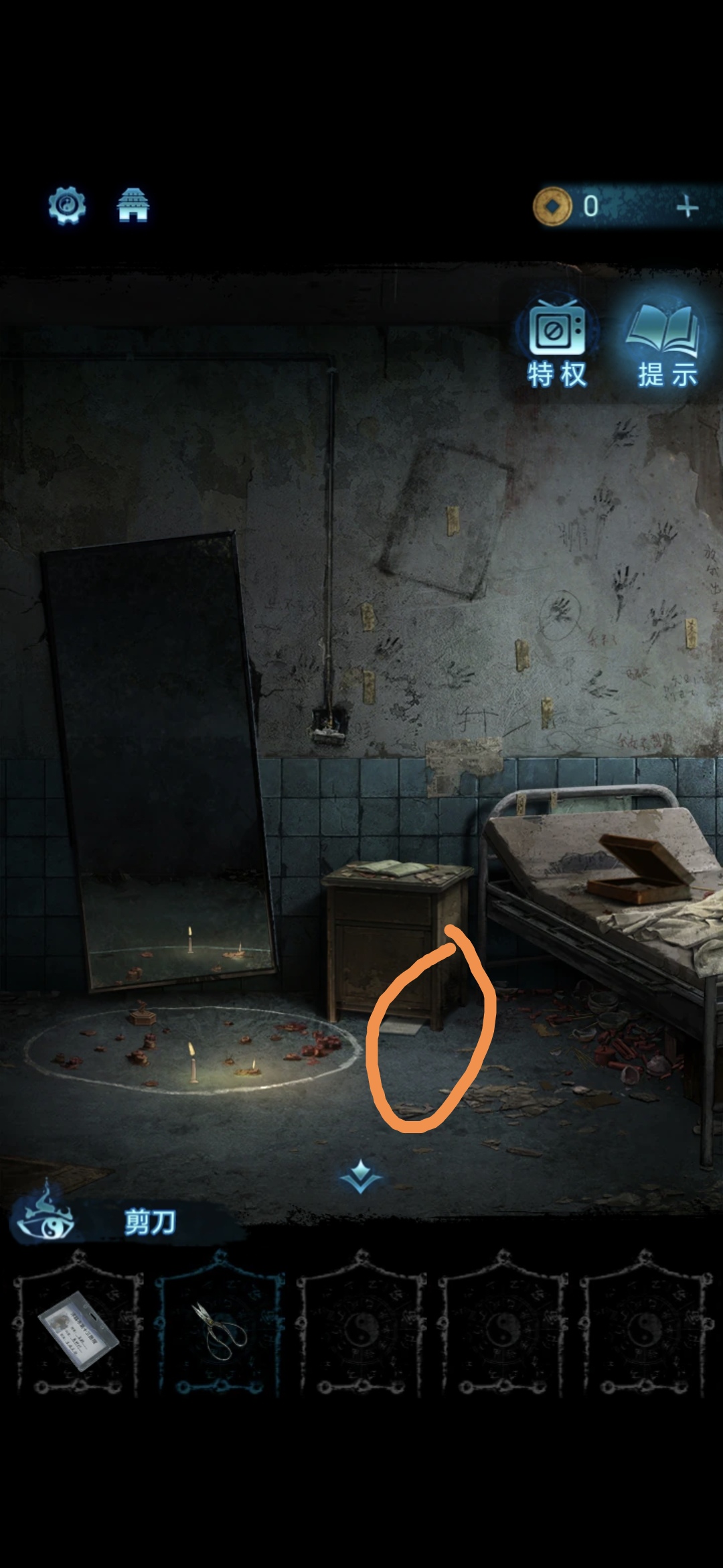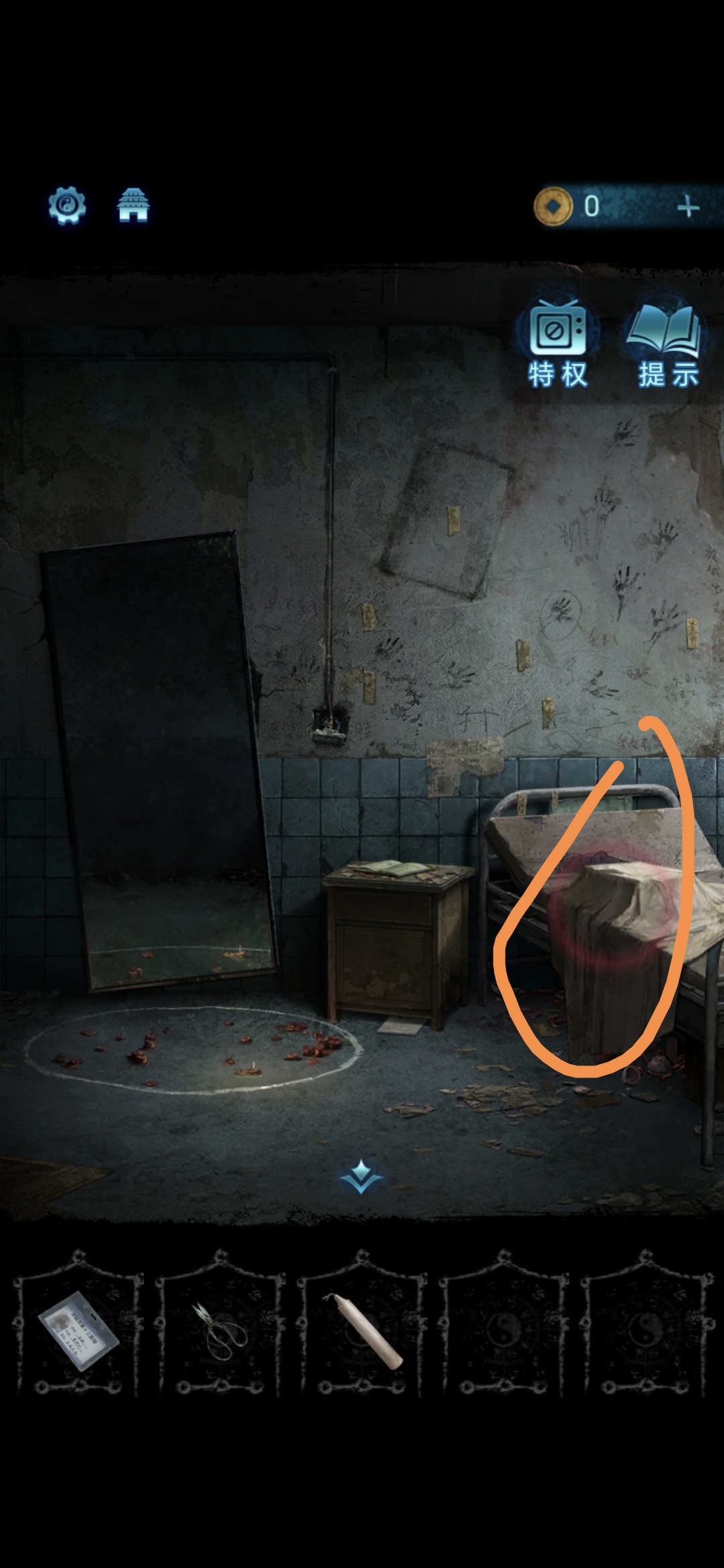 推大厅右侧的床,点击右上方的扬声器,用胶带粘上电线,点击大厅右侧的窗户得到药瓶
