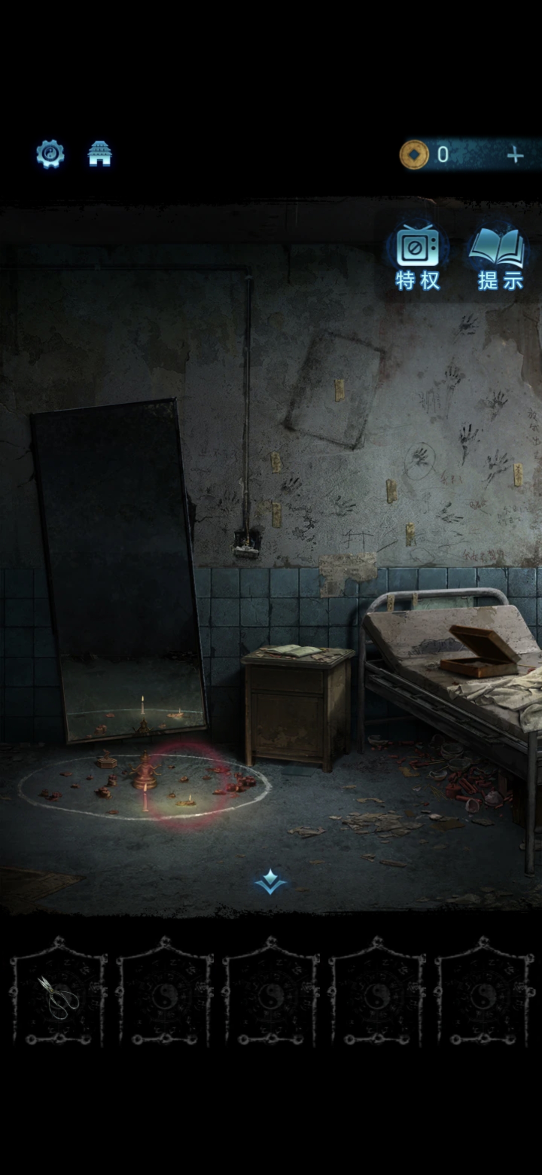 将蜡烛、音乐盒和金雕像放在镜子前的圆圈中,然后浏览剧情。第一章结束了。
