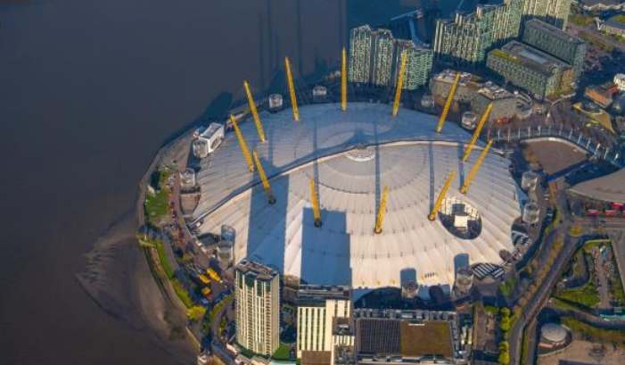 2、O2体育馆曾举办过许多大型活动和读书表演,也是世界上最大的拱形建筑之一。