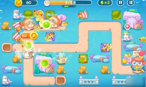 《女儿保卫萝卜4海》50级有两张场景地图,主要需要建造地雷、鸡蛋、乌龟、锚等。