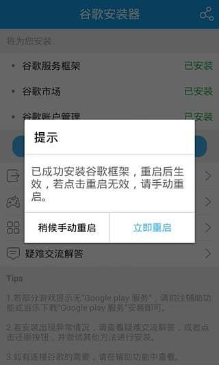2.一键安装智能一键安装谷歌服务框架、谷歌破解市场和谷歌账户管理,谷歌完美三件套保证您安卓游戏的运行